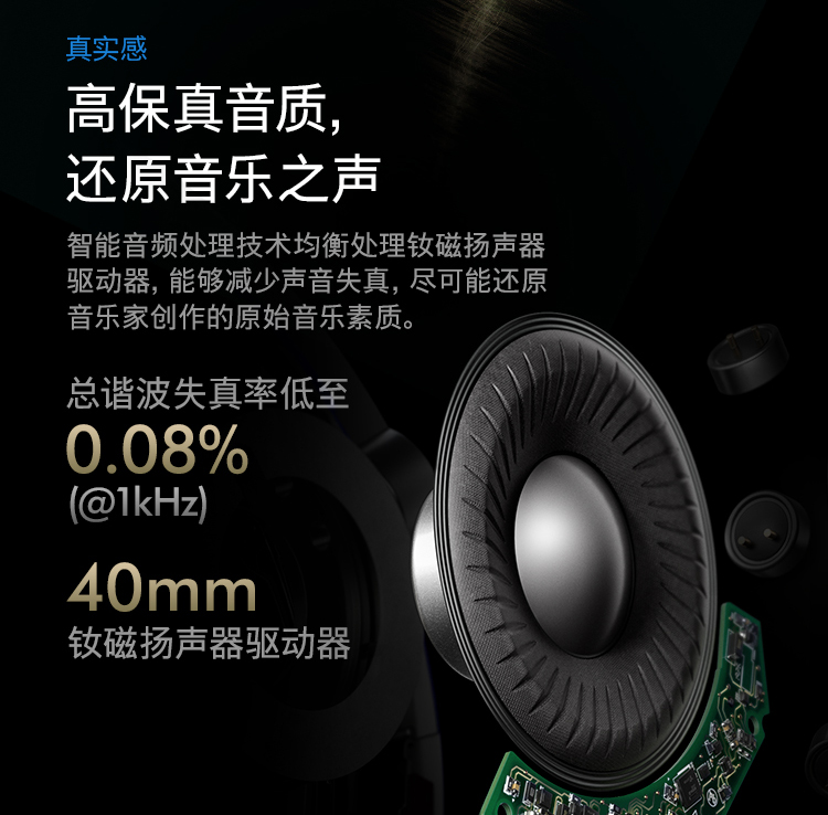 ● 主动降噪,高保真音质,宽广音域