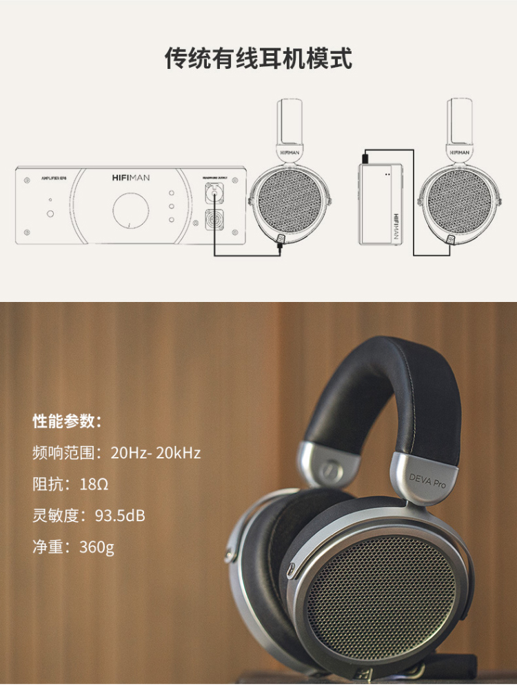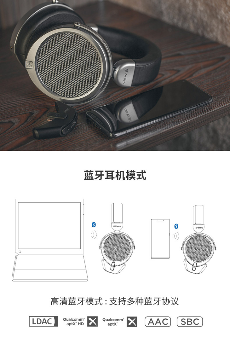 HIFIMAN(海菲曼)DEVA PRO平板振膜头戴式蓝牙耳机(灰色)