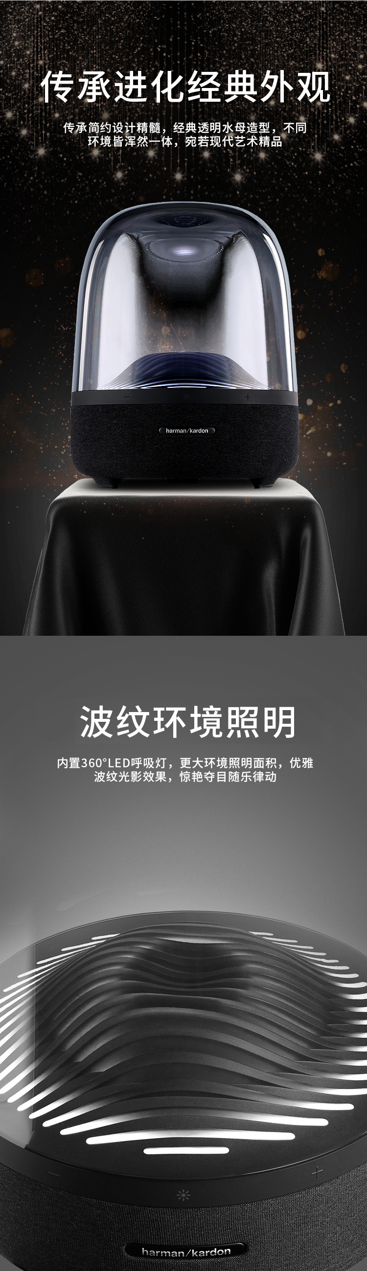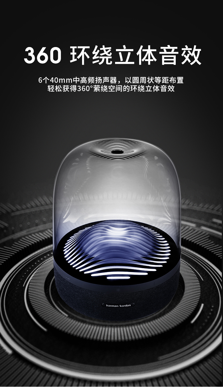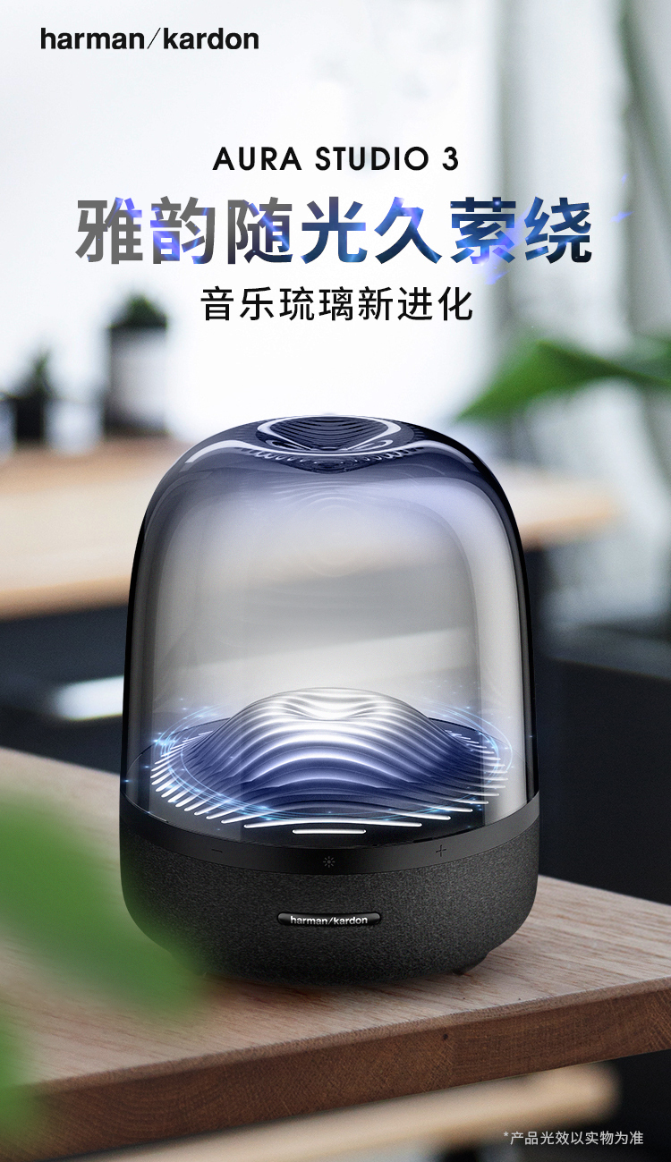 哈曼卡顿(Harman Kardon)音乐琉璃3代 蓝牙音箱桌面低音炮音响 Aura Studio3(星空灰)