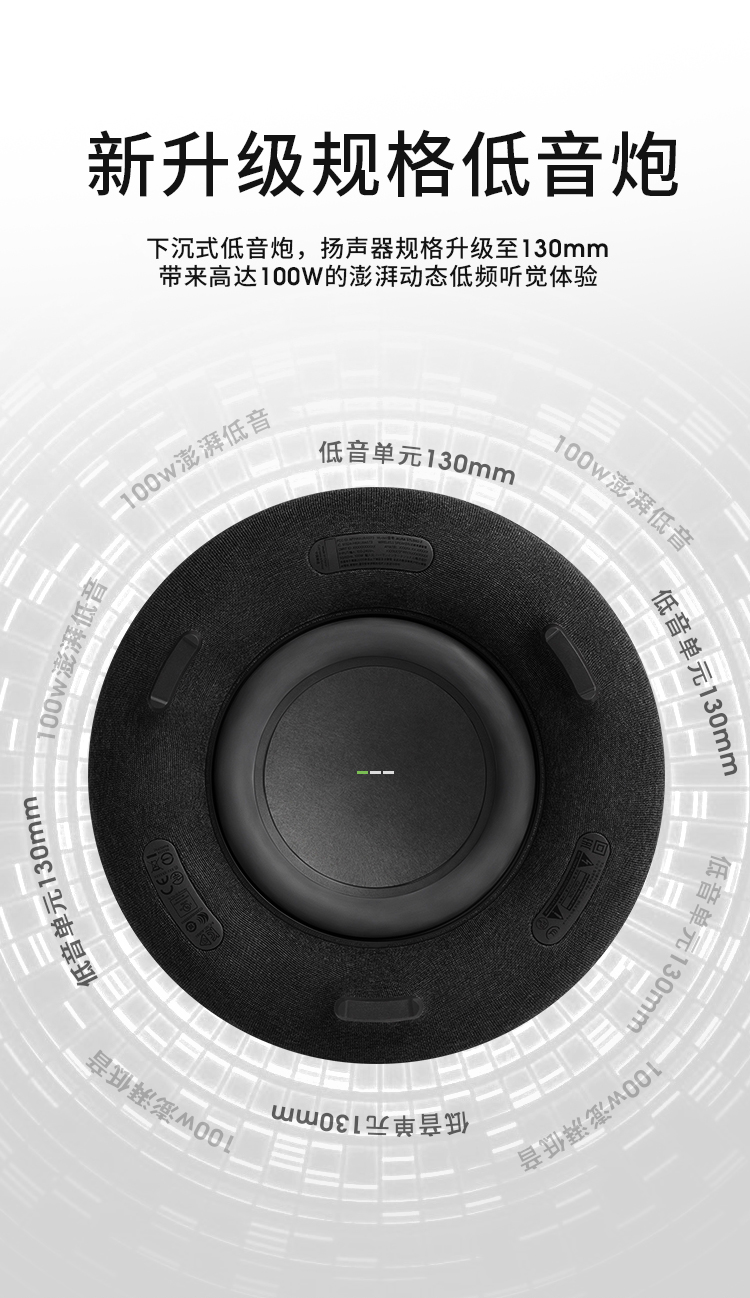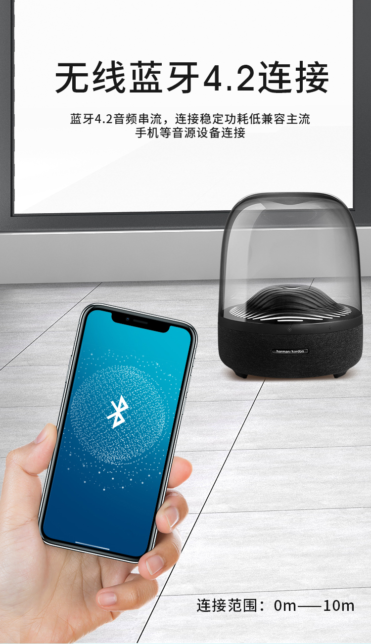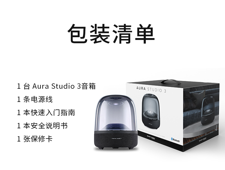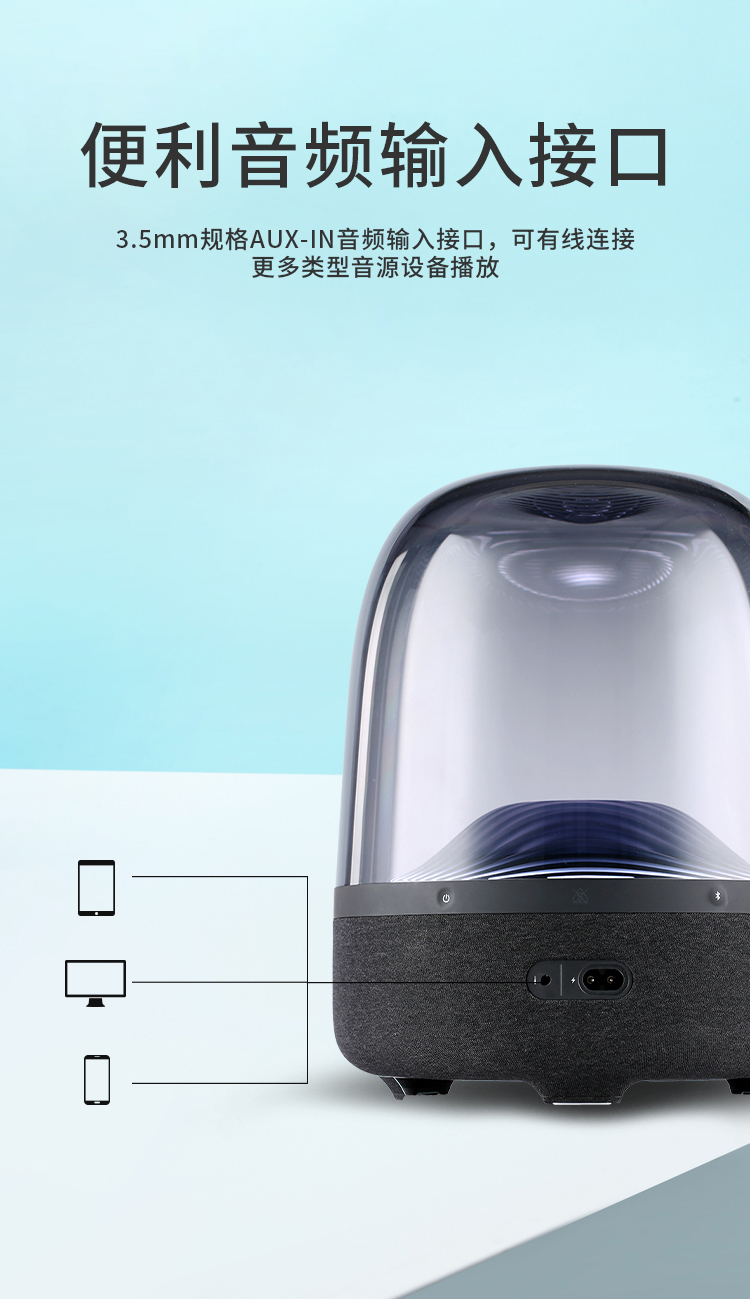 哈曼卡顿(Harman Kardon)音乐琉璃3代 蓝牙音箱桌面低音炮音响 Aura Studio3(星空灰)