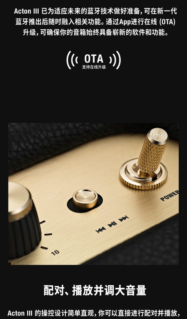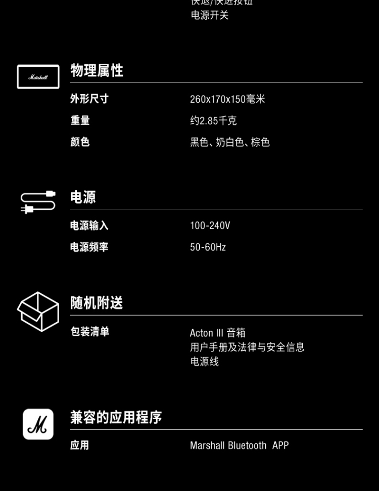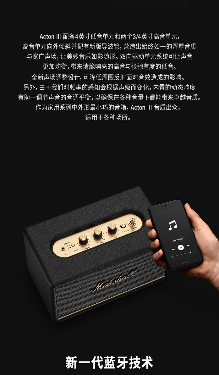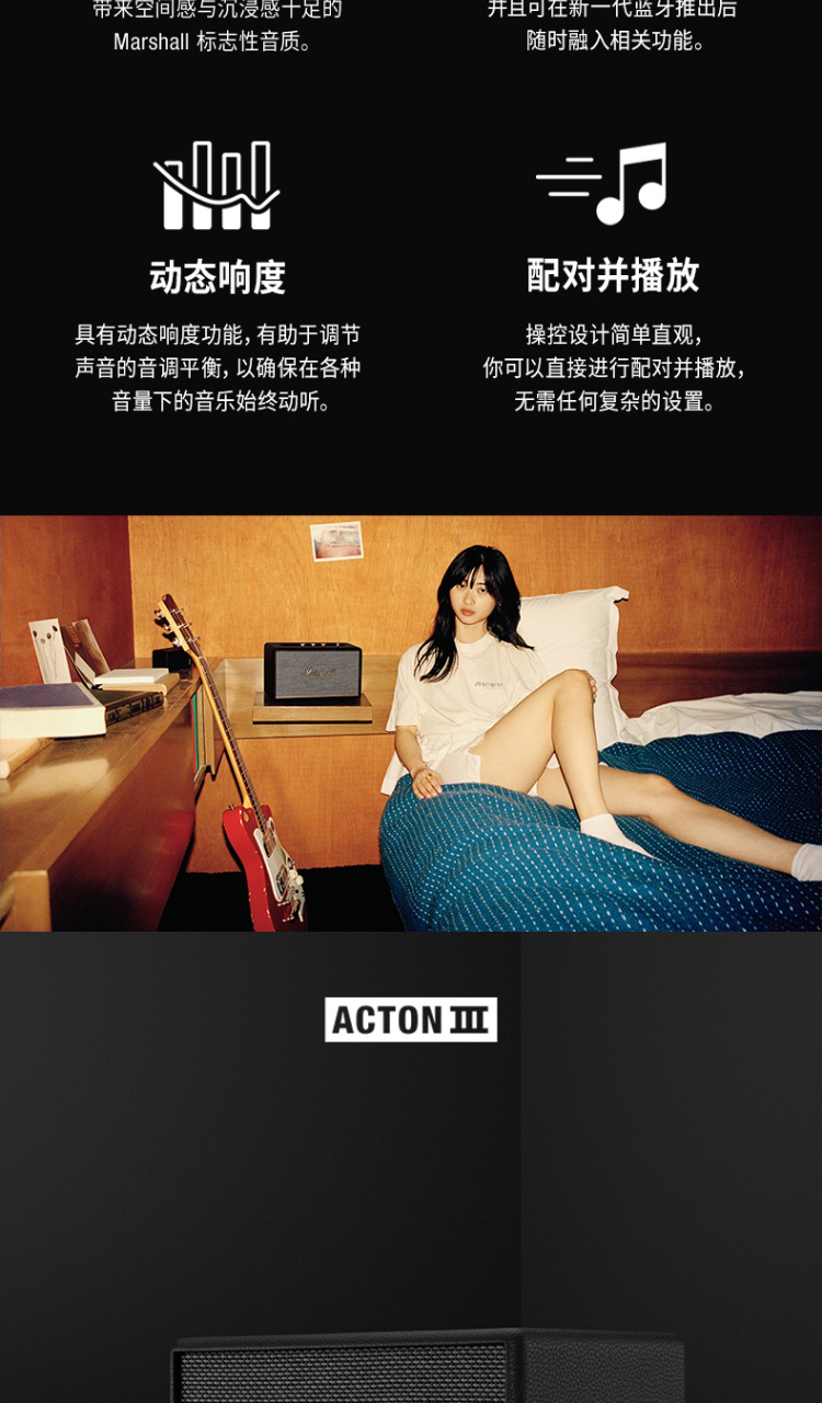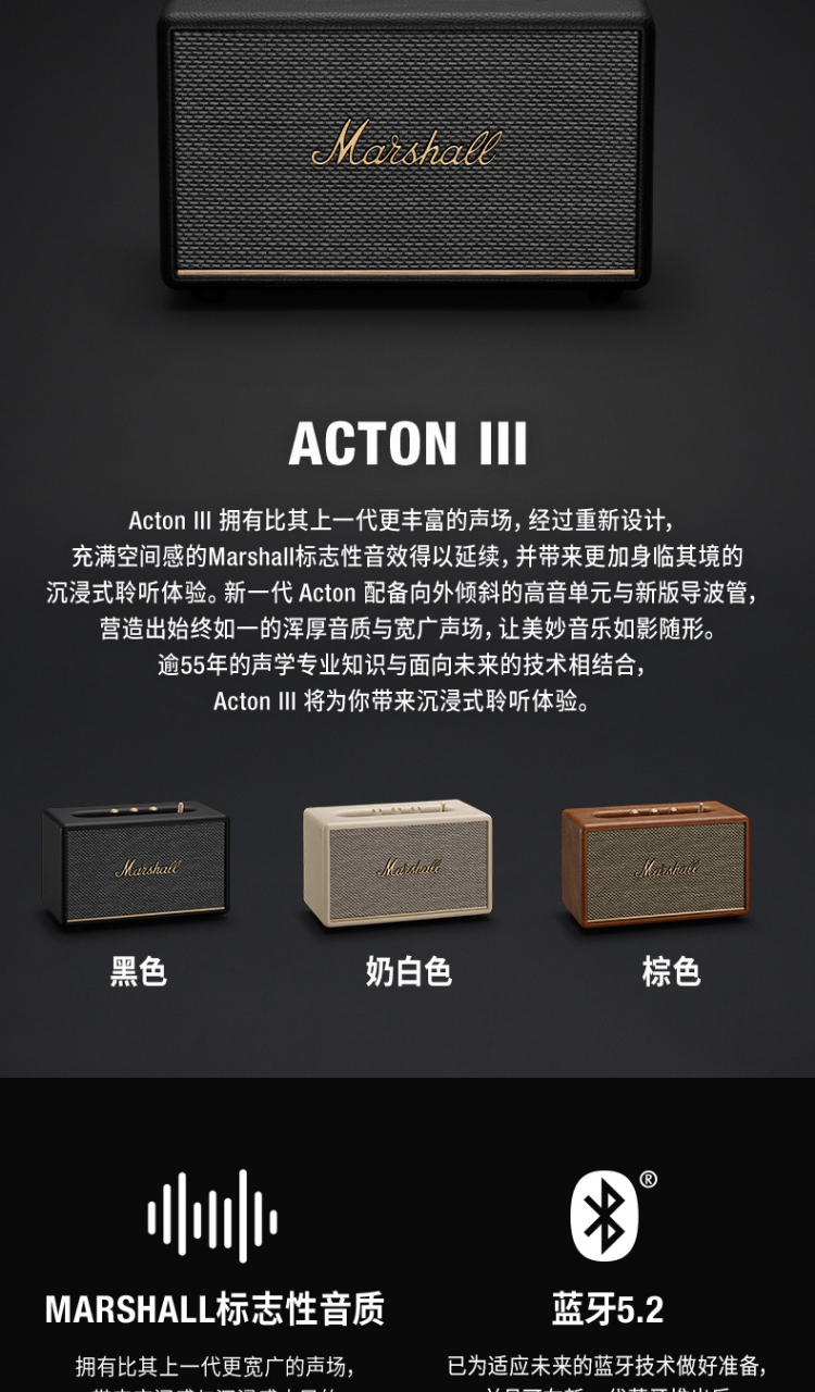 马歇尔(Marshall)ACTON III 3代无线蓝牙音箱 摇滚家用重低音音响(奶白色)