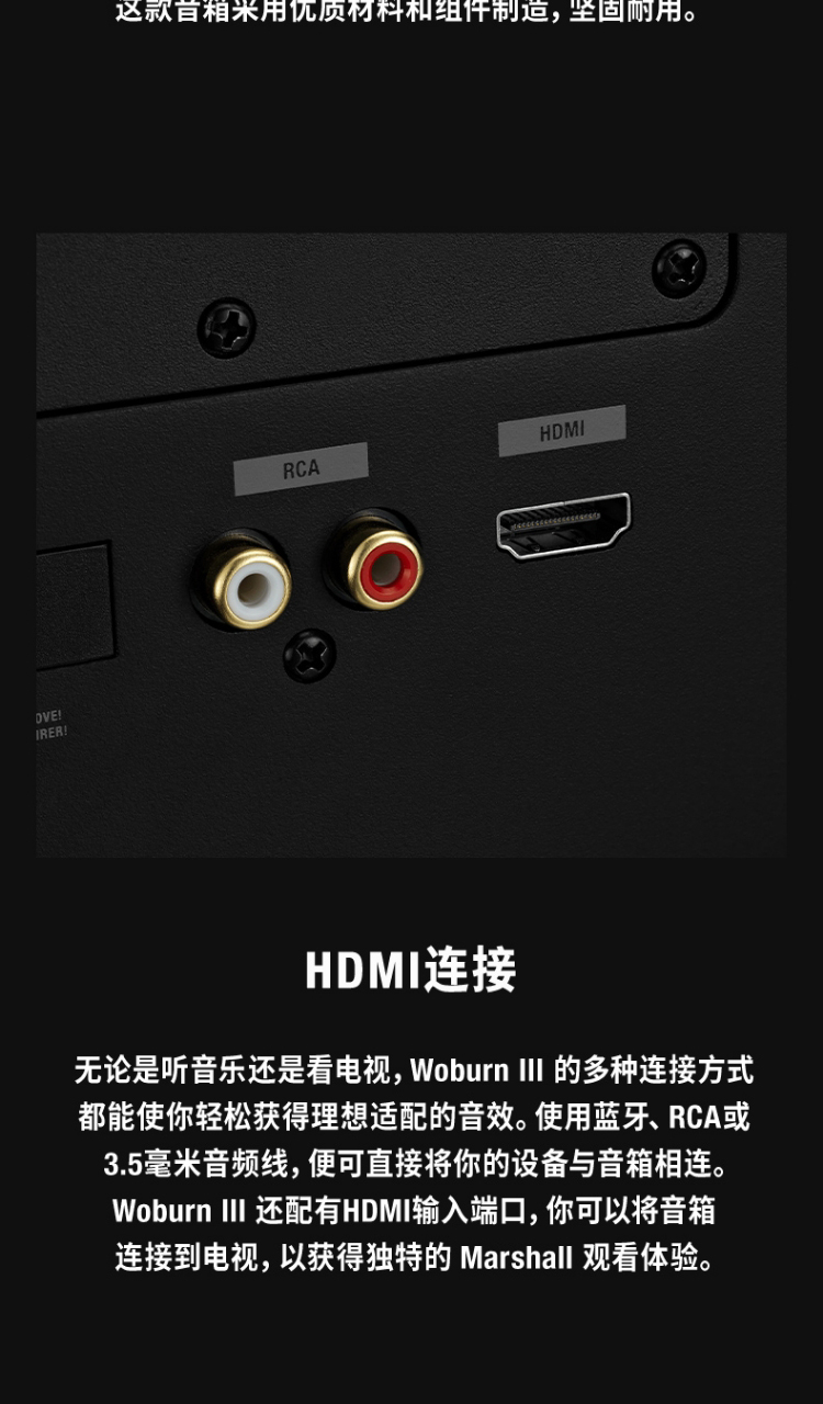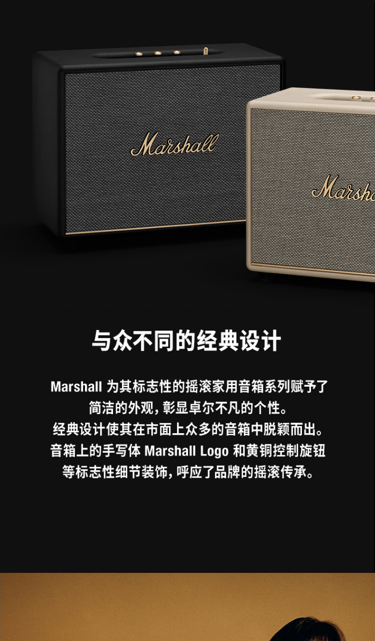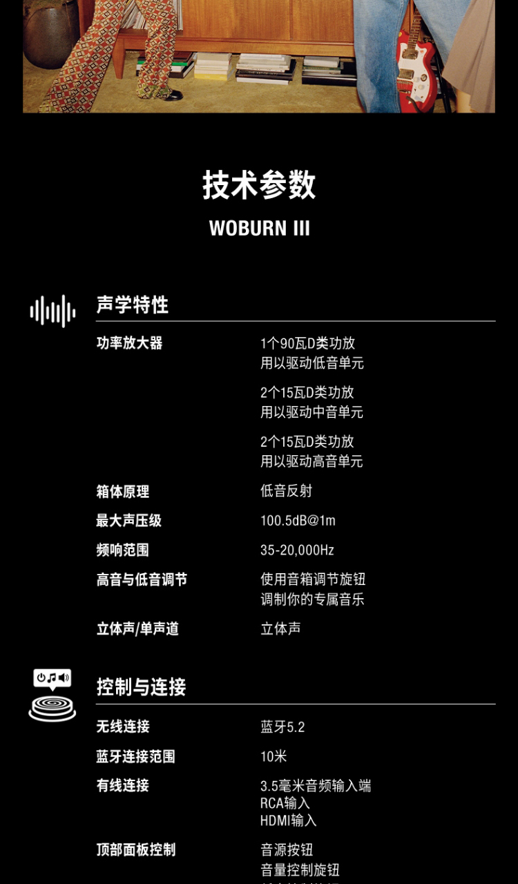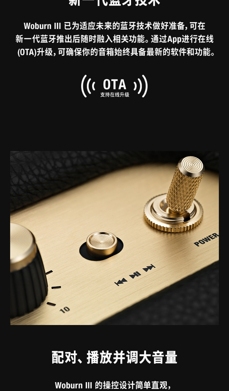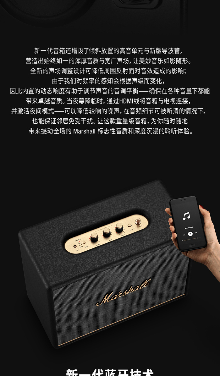 马歇尔(Marshall)WOBURN III 3代无线蓝牙音箱 摇滚家用重低音音响(黑色)
