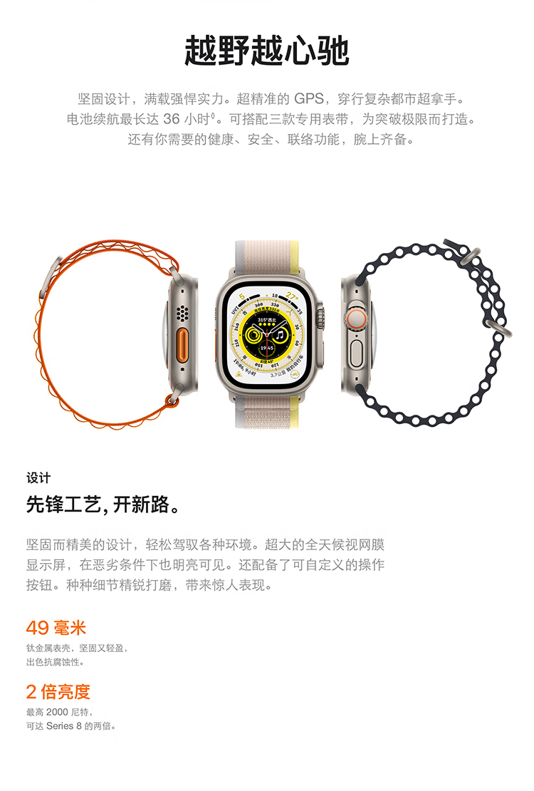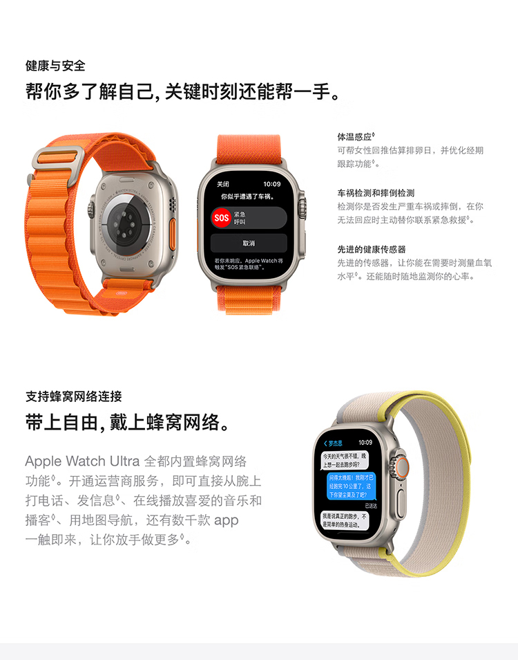 【询客服同城送】Apple Watch Ultra 49mm钛金属表壳橙色高山回环表带蜂窝版智能手表