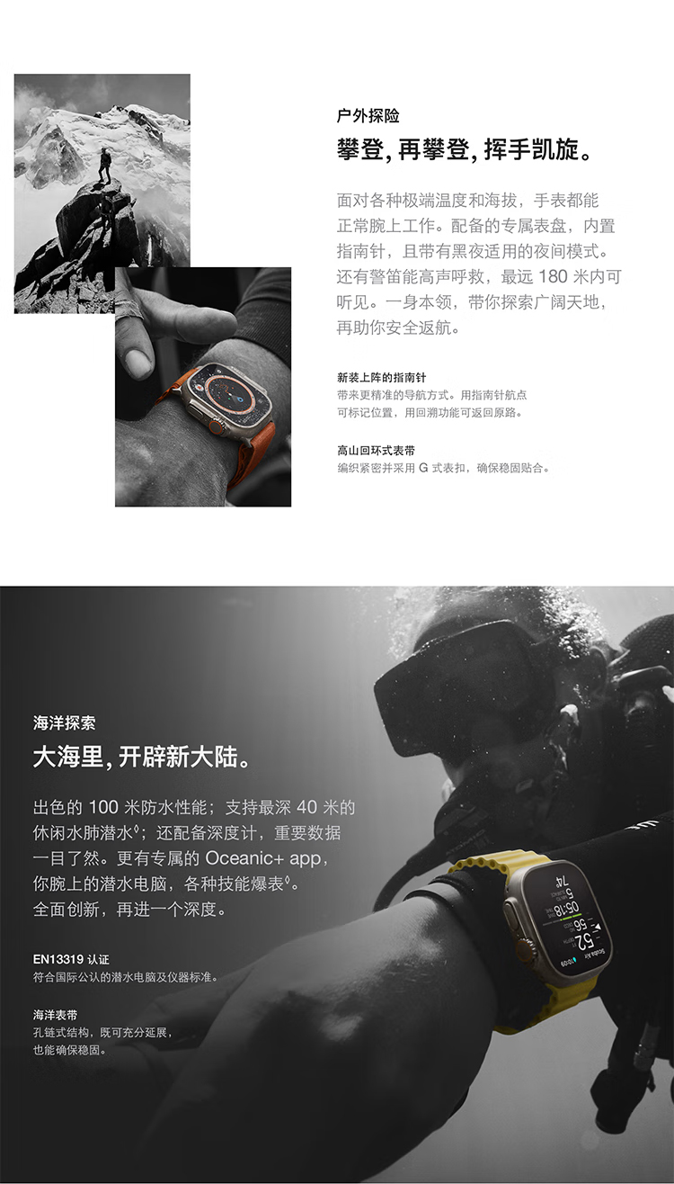 ● 容量32GB,100米防水,游泳适用,支持最深40米休闲潜水