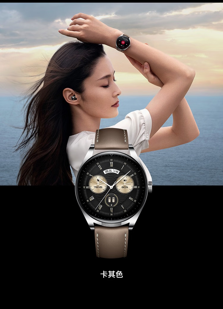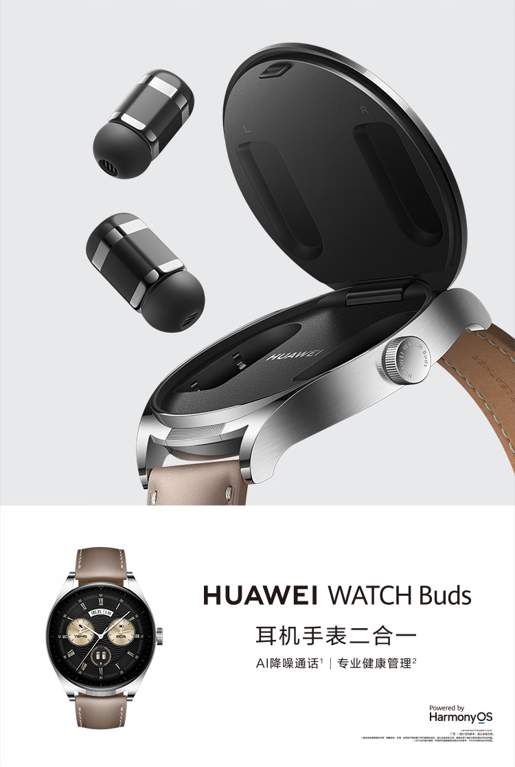 华为(HUAWEI) WATCH Buds 华为手表 运动智能手表 耳机表 AI降噪通话专业健康管理耳机手表二合一(卡其色真皮表带)