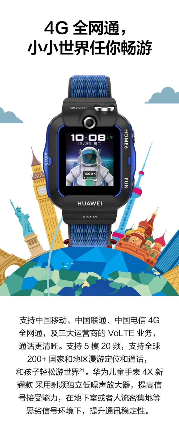 华为(HUAWEI)儿童手表4X 新耀款 双摄视频通话 50米防水【区域限购】