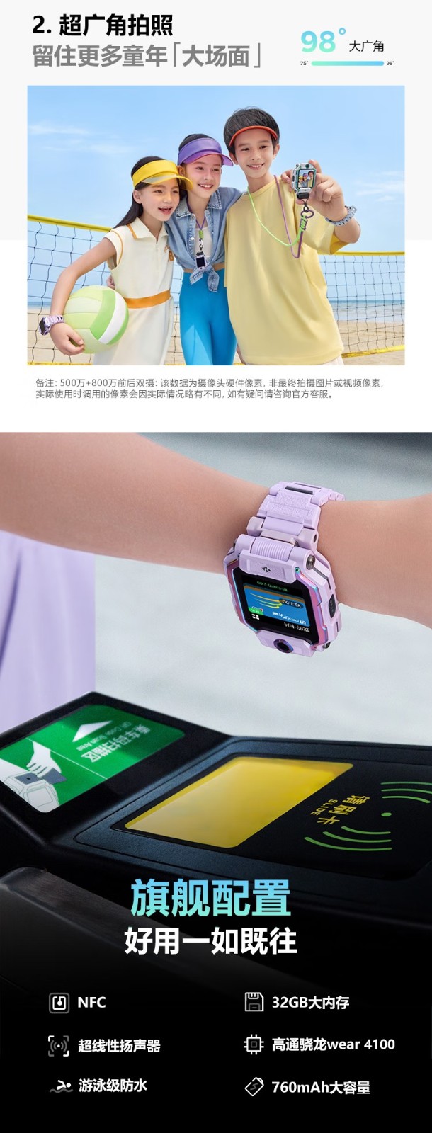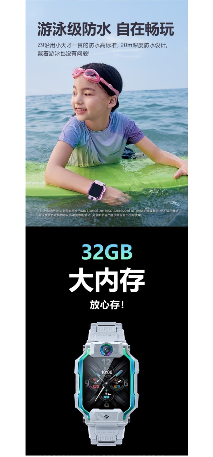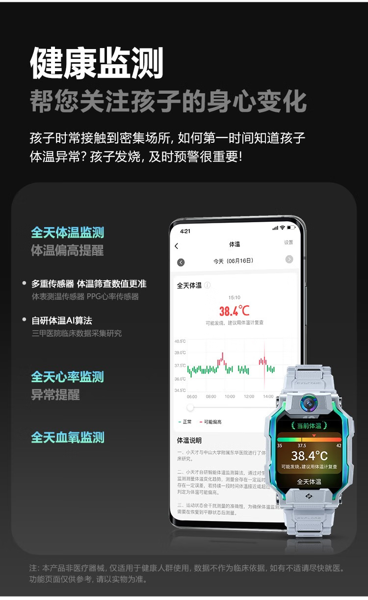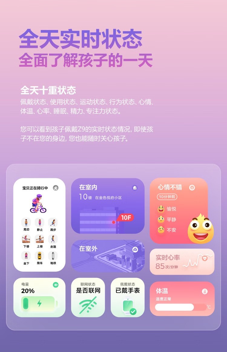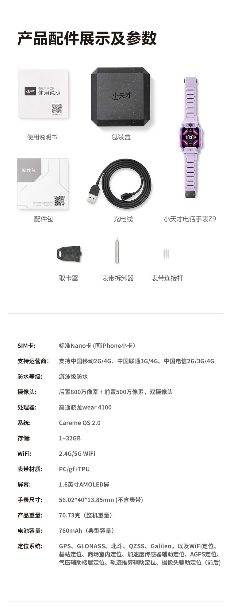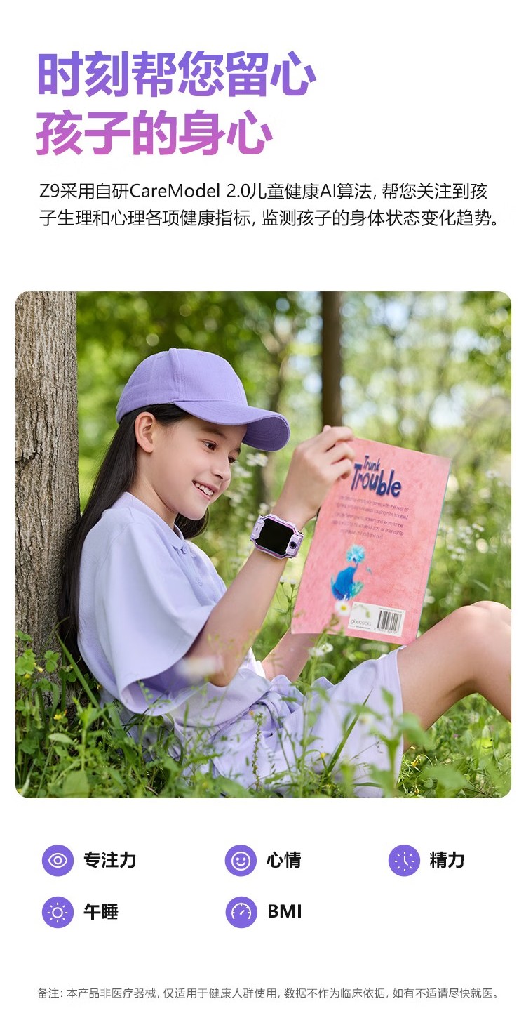 【新品】小天才电话手表Z9 分体双摄 98°超大广角 体温心率检测 4G智能手表
