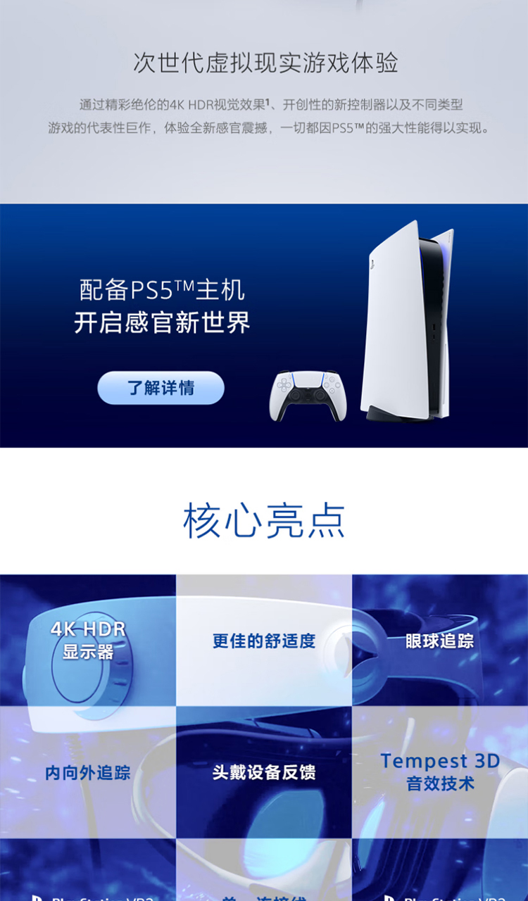【新品】索尼(SONY)PlayStation VR2 PS5专用 虚拟现实头盔头戴式设备(白色)