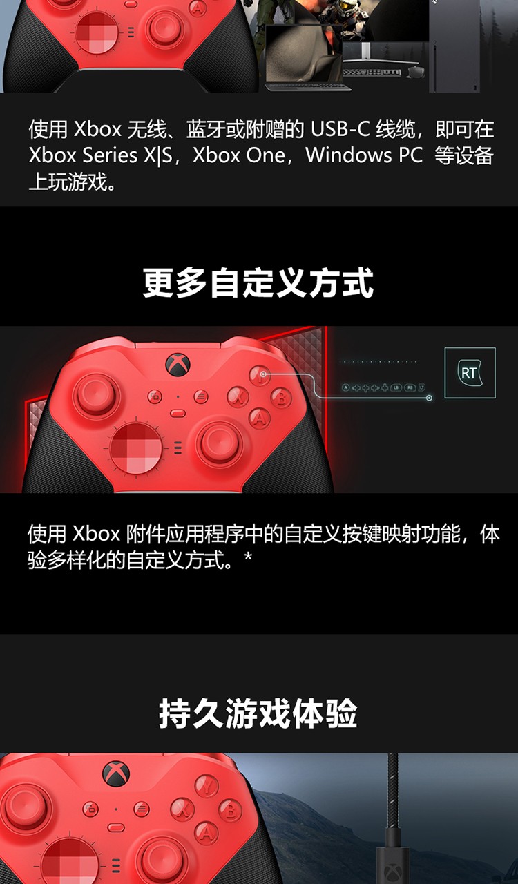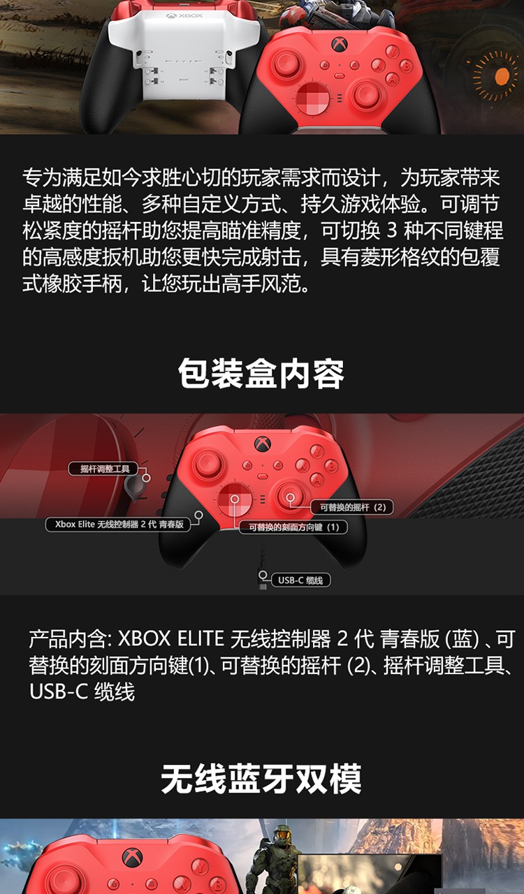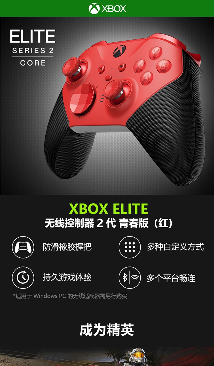 微软(Microsoft)Xbox Elite无线控制器2代游戏手柄青春版RFZ-00016(红色)