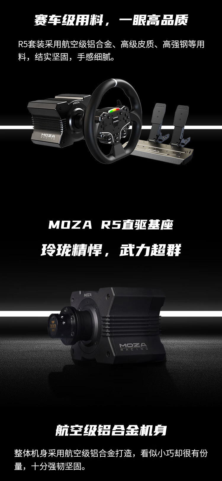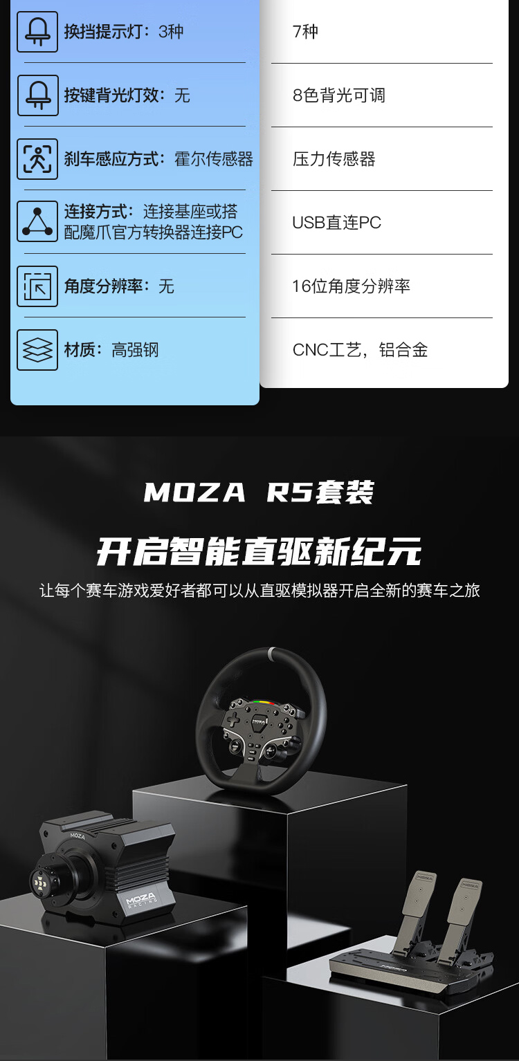 【新品 】MOZA魔爪 R5双踏赛车模拟器方向盘套装 R5基座+R5方向盘+R5双踏板(黑)