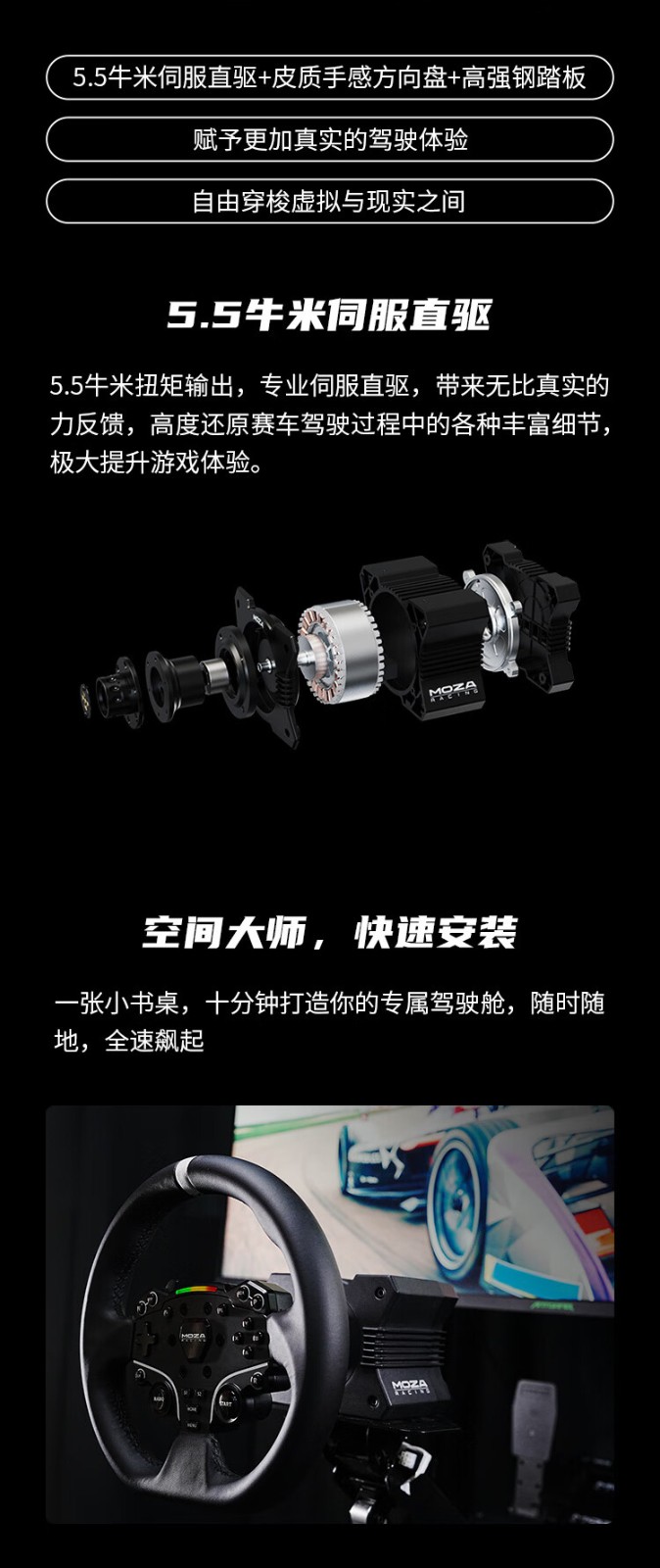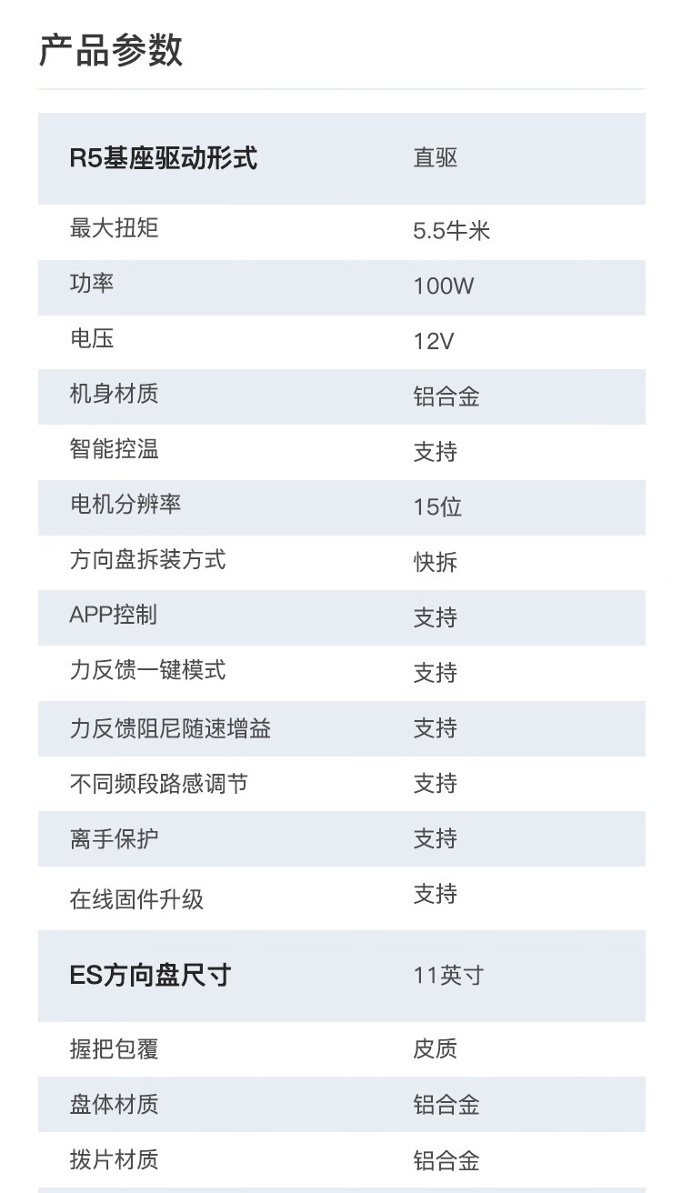 ● 5.5牛米伺服直驱,带来真实的力反馈,还原驾驶中的各种细节