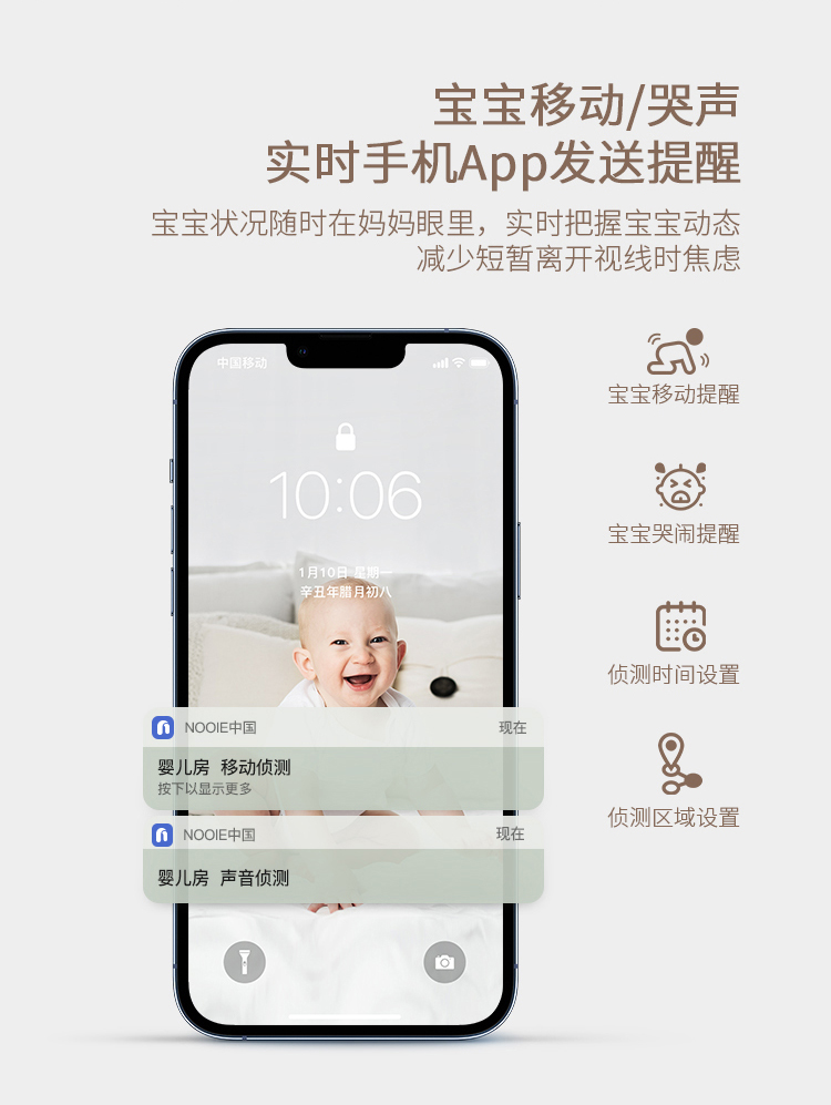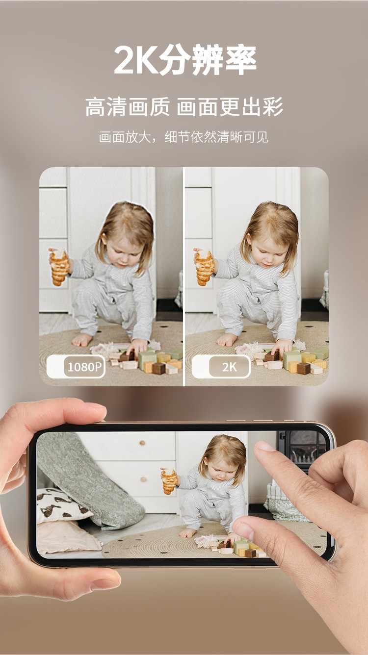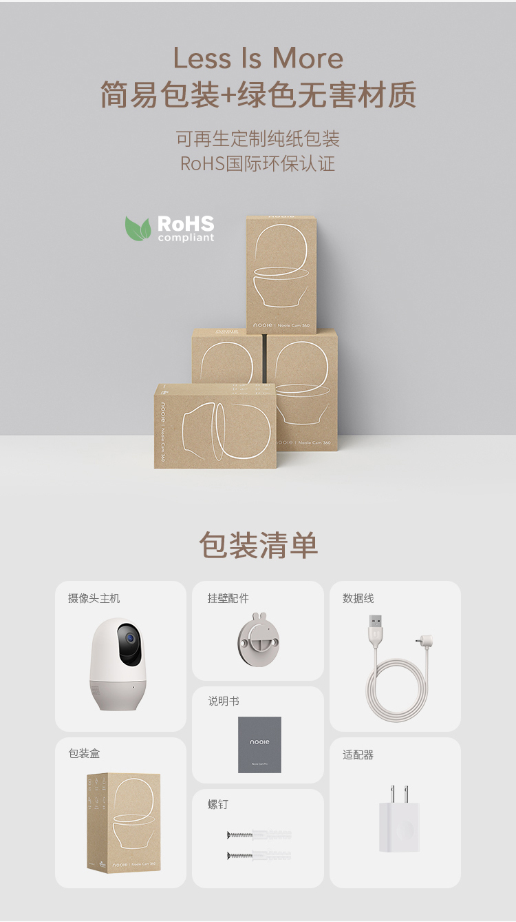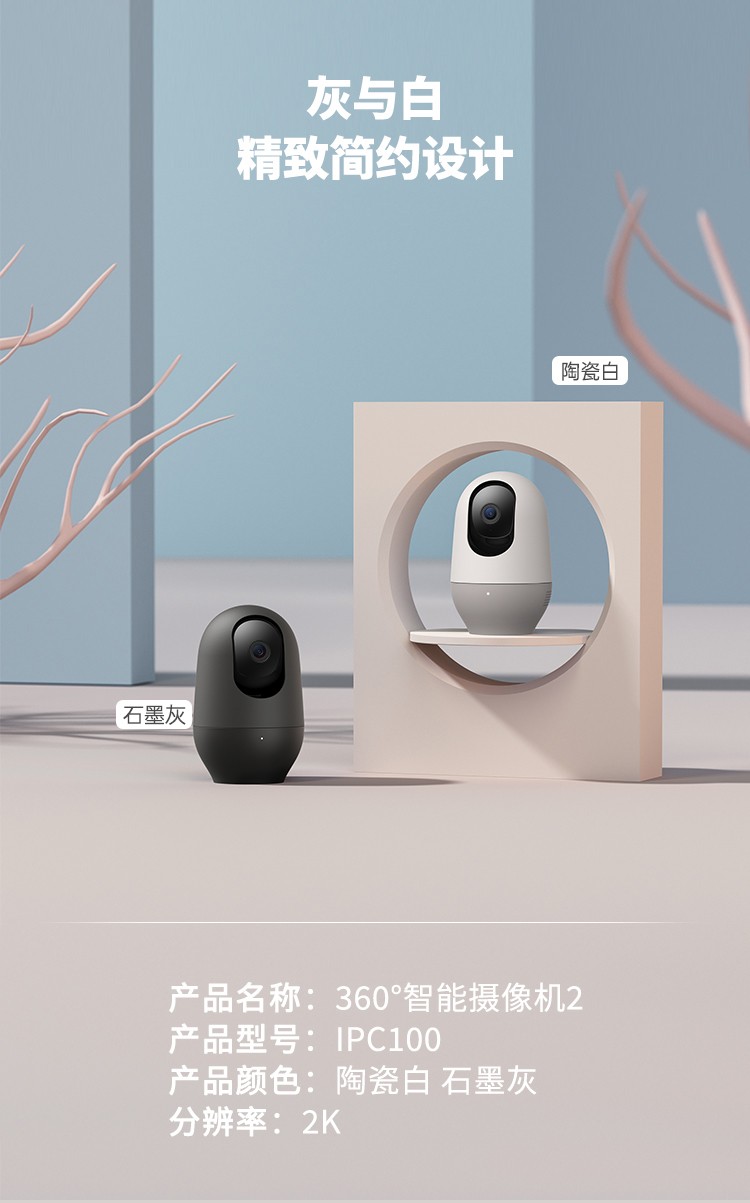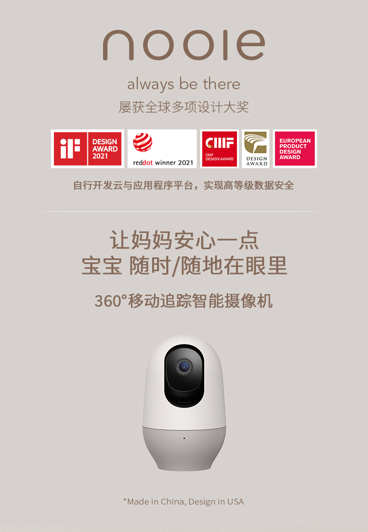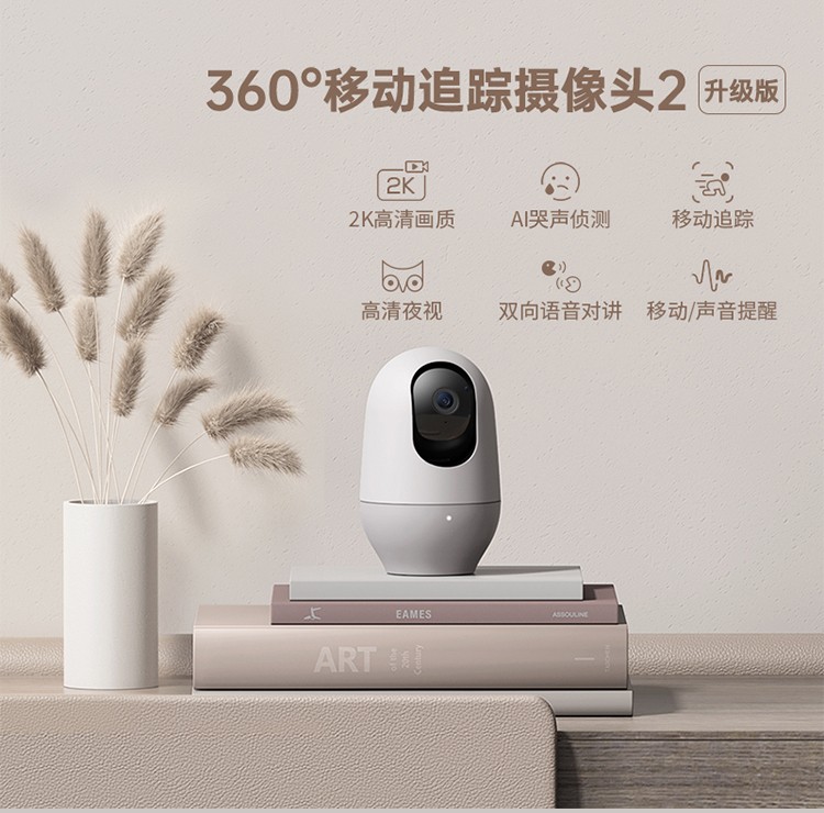 诺伊(nooie)360°移动追踪摄像头家用监控智能摄像机 2k版IPC100(陶瓷白)带32G储存卡