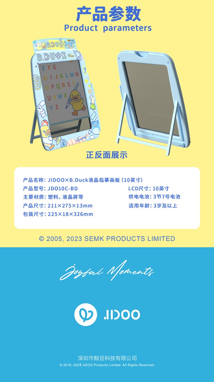 小黄鸭(B.Duck)10英寸 儿童手绘板 液晶临摹画板 JD010C-BD(蓝色)